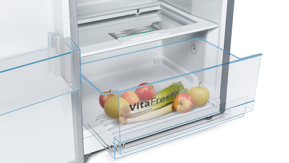 - VitaFresh: Vitaminreiches Obst & Gemüse bleibt bei kontrollierter Luftfeuchtigkeit in der Schublade länger frisch.